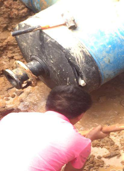 6月19日上午7:45,接到分管领导黄副经理电话说:“美林水厂二级泵房的水流量突增,疑是漏水。”漏水就是命令,时间就是效率。接通知后,傅所长立刻组织营业所成员兵分两路,一路从凤凰湖到市民中心巡查一路从江北大道巡查。8:07我们查到位于市民中心南安市第三小学边DN600管道爆裂,漏水严重。傅所长立即向黄副经理汇报情况,并通知维修队。8:30黄副经理赶到现场,启动《南安市自来水公司应急预案》。随后,美林水厂戴厂长带领迅捷维修人员、安装公司及抢修队人员也都快速到达现场。由于此管道是通往市区和霞美的主管道,一旦无法及时修复将直接影响整个市区和霞美的供水水压。公司领导高度重视,黄副经理在现场召集各部门相关人员及维修人员制定抢修方案。方案确认后抢修人员立即关闭了止水闸门,实施挖掘、排水、破管、计算、丈量、领件等,各项工作紧张而有序地进行着。由于当天的天气不好,随时有下雨的可能,为了尽快修复,工作人员顾不上中午休息。到了下午四点左右,一串串黄豆大的雨点,砸在了抢修人员的身上,但雨水止不住抢修的步伐,每当汗水和雨水遮住他们的双眼时,他们才用袖子抹去脸上的雨水继续投入到抢修中,凭着这股“苦干、实干、硬干”的工作作风,经过8小时的努力终于完成了管道修复,大家总算松了一口气,各自都拖着疲惫的身躯和浑身的泥泞回家。