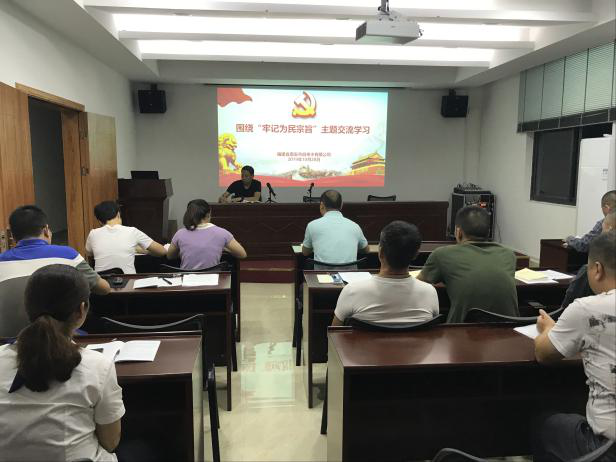 与会同志共同学习了《习近平在厦门》系列采访实录、观看《廖俊波》、《才溪乡调查》微电影、学习《习近平关于“不忘初心,牢记使命”论述摘编》之第六章--坚持以人民为中心,把群众观点和群众路线深深植根于思想中、具体落实到行动上。接着,大家围绕“牢记为民宗旨”这一主题展开研讨交流,吴书记、黄副经理、党员代表及入党积极分子分别在会上交流发言。